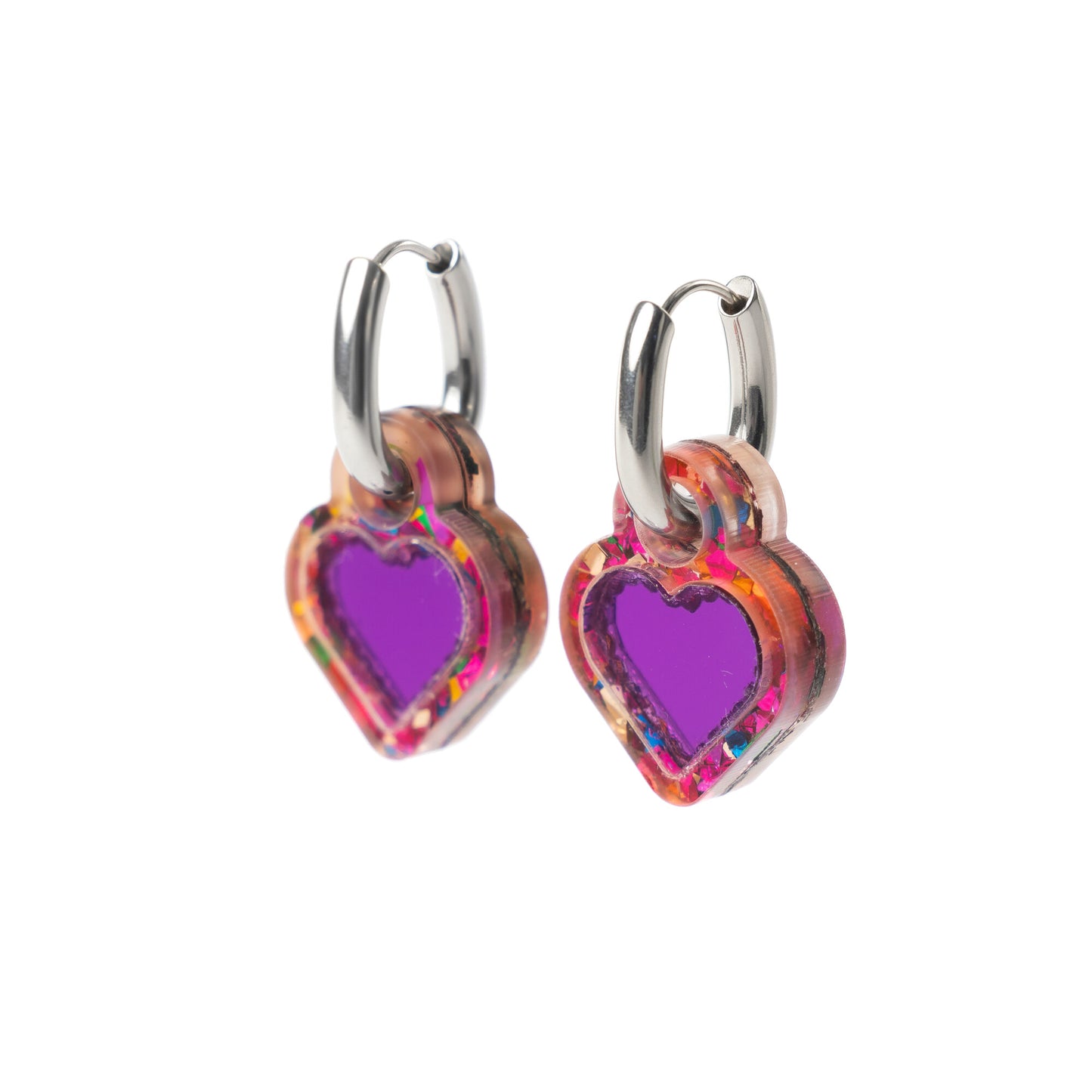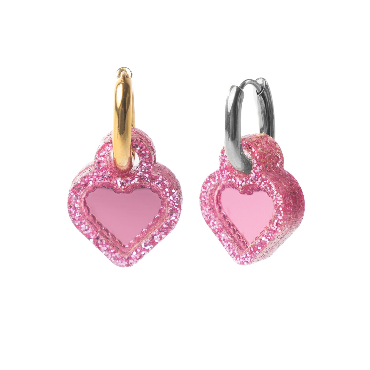 Glitter Heart Huggie Earrings - Double Chunk – Bold, On-Trend and Customisable Earrings