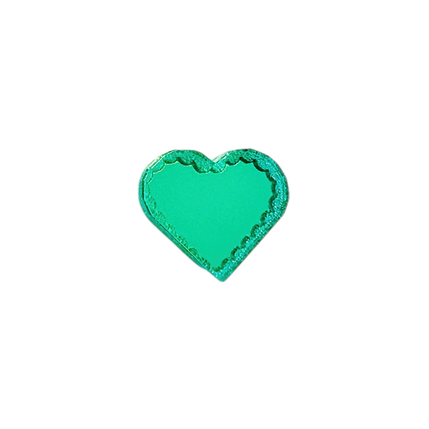 - Engraving: Fun scalloped edge engraved around the edge of the mirror heart.