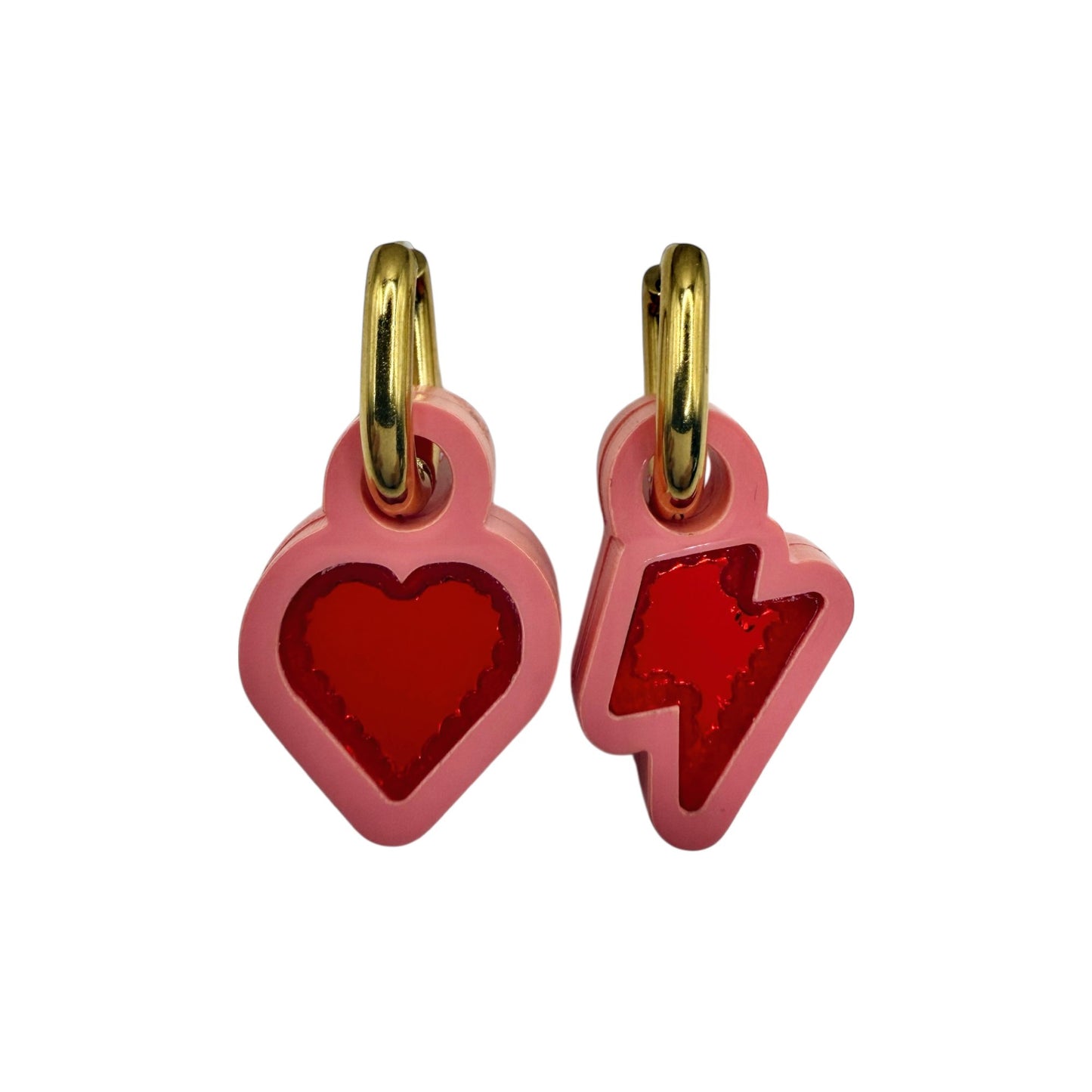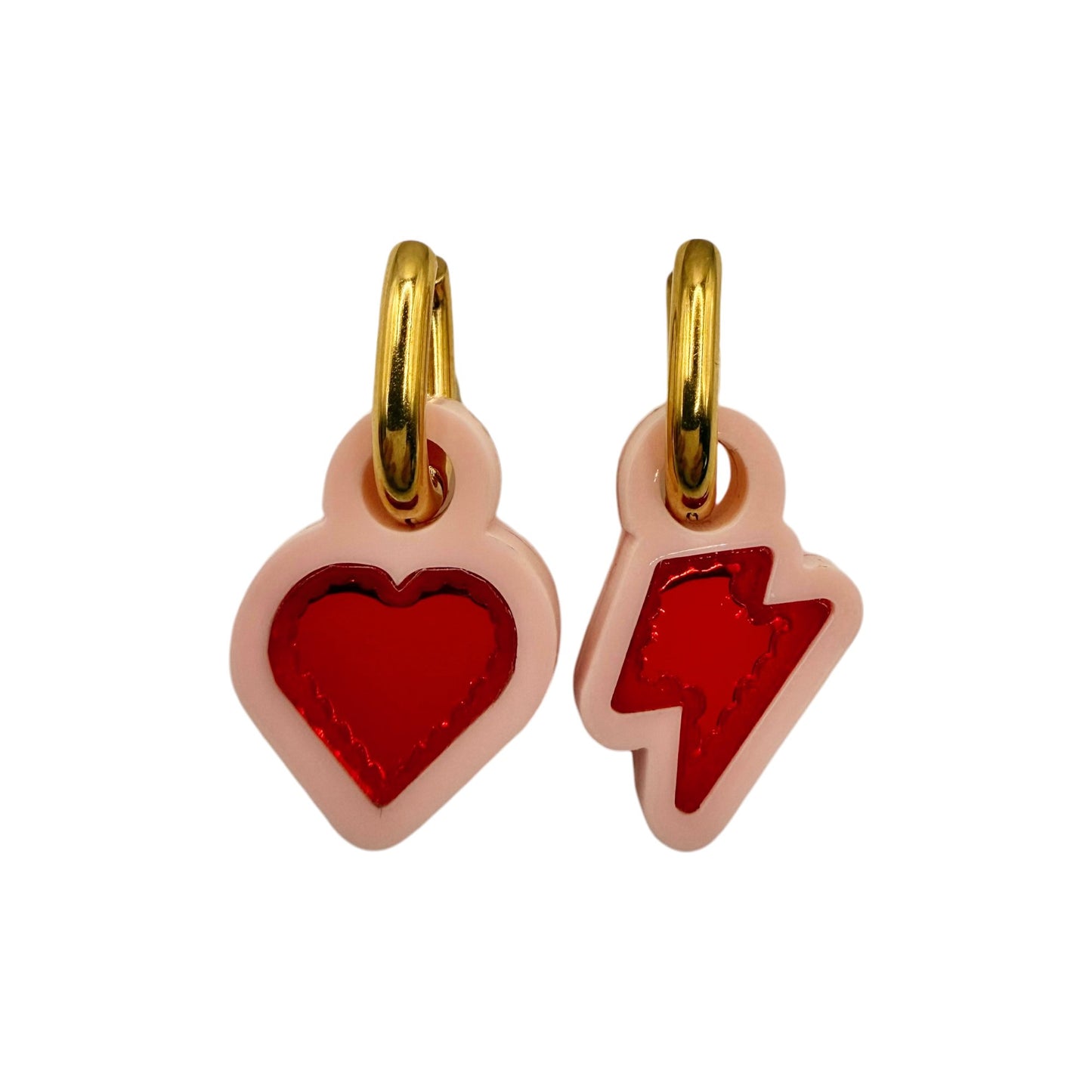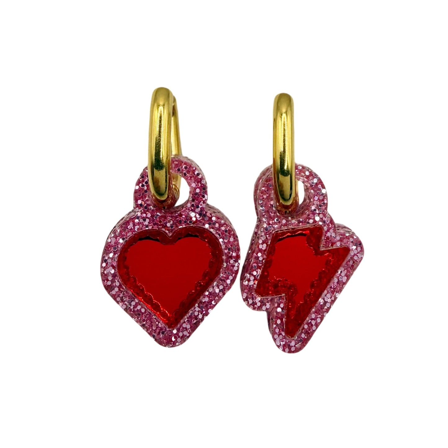 Featuring our iconic heart and lightning bolt charms, this mismatched pair symbolises the full spectrum of womanhood. The heart represents love, vulnerability and resilience, while the bolt represents power, determination and that electric spark we carry within us.