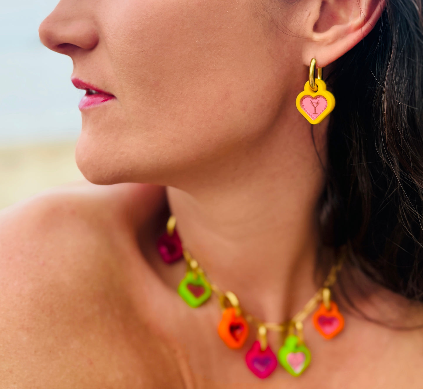 Looking for earrings that are bold, stylish, and totally unique? Our Chunky Heart Huggie Earrings are here to steal the spotlight! These beauties are available in many stunning colourways, combining laser-cut acrylic and mirrored acrylic for that perfect blend of shine and fun.
